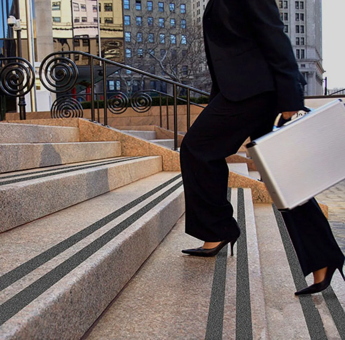 Lojas ou prédios com rampas de acesso ou com pisos diferenciados entre uma área e outra, precisam das fitas antiderrapantes para que o choque de mudança de pisos não resultem em quedas.